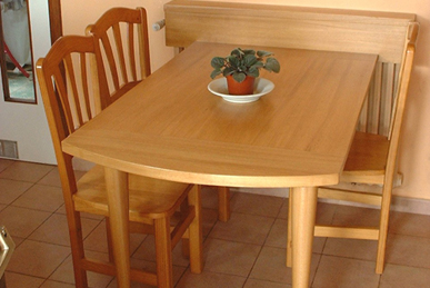 Trabajamos con madera maciza, como el roble, el fresno, el nogal, el pino, etc. Envejecemos la madera dándole un acabado noble.